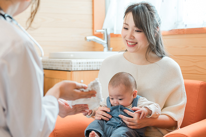 乳児健診では、成長・発達の確認を中心に赤ちゃんの健康状態を細やかに診察いたします。発育チェック、運動発達の様子、生活リズムなど、多方面から赤ちゃんを診察し、必要に応じて早期のフォローにつなげていきます。育児で気になることがありましたら、小さなことでもご相談ください。