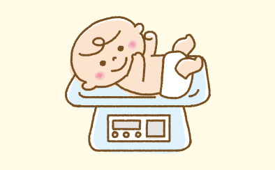 体重、身長、頭囲を測り、発育の確認をします。
